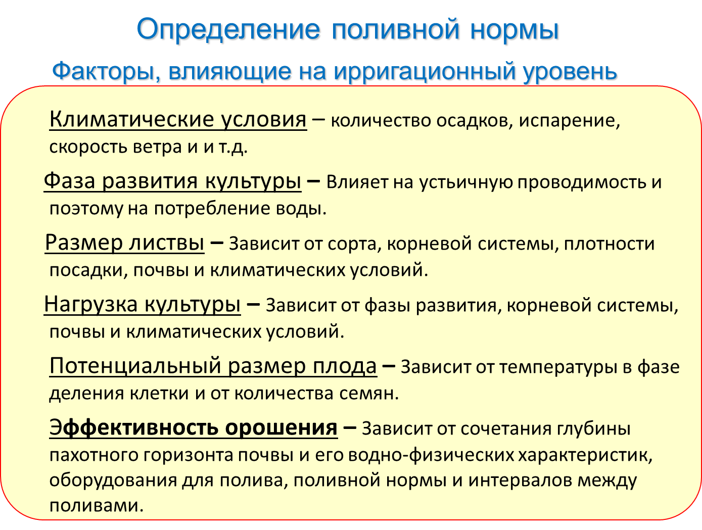 Заявка на расчет системы орошения